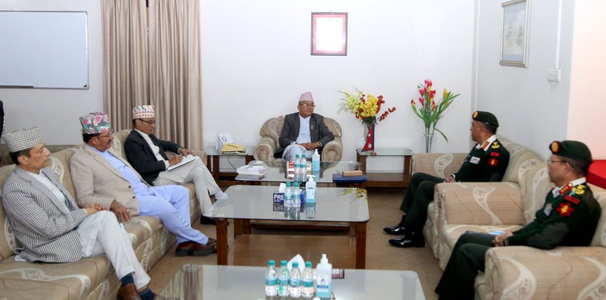 आयोगको कान्तिपथस्थित कार्यालयमा भएको भेटका अवसरमा प्रधानसेनापति शर्माले निर्वाचन सुरक्षाका लागि नेपाली सेनाले गर्दै आएको काम कारवाहीबारे अवगत गराउँदै हालसम्मको स्थलगत निरीक्षण र प्राप्त सूचनाका आधारमा निर्वाचनको सुरक्षा चुस्त रहेको र निर्वाचन सुरक्षित वातावरणमा सम्पन्न गराउन सेनाका तर्फबाट खेल्नुपर्ने भूमिका निर्वाह गर्न तयार रहेको स्पष्ट गरेका थिए ।