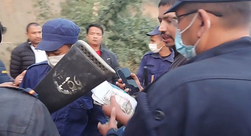 उनको साथबाट चेकबुक र नगद १ लाख १४ हजार रूपैयाँ बरामद गरेको स्थानीय दीपक न्यौपानेले जानकारी दिए । प्रहरीको गस्ती टोली देखेपछि उनीहरूले बाँकी पैसा भीरमा फालेको न्यौपानेले बताए ।