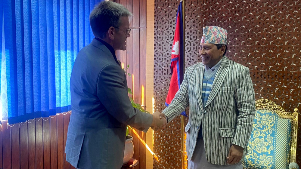 राजदूत थम्पसन आज सिंहदरबारस्थित मन्त्रालयमा मन्त्री श्रेष्ठलाई बधाई दिन पुगेको थिए । राजदूत थम्पसन तीन महिना पहिले मात्रै काठमाडौँस्थित दूतावासमा जिम्मेवारी सम्हाल्न आएको थिए ।