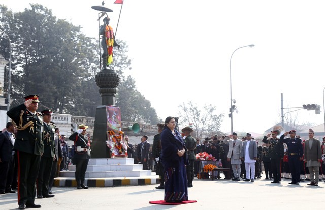 पृथ्वीनारायण शाहको ३०१ औँ जन्मजयन्तीका अवसरमा सिंहदरबार पश्चिम मूलढोकाअघि रहेको सालिकमा उहाँले पुष्पहार एवं माल्यार्पण गरेको हो । पृथ्वी जयन्तीका अवसरमा उहाँप्रति श्रद्धाभाव प्रकट गर्न सिंहदरबार पश्चिम मूलढोकाअघि मानिसको भीड लागेको छ ।