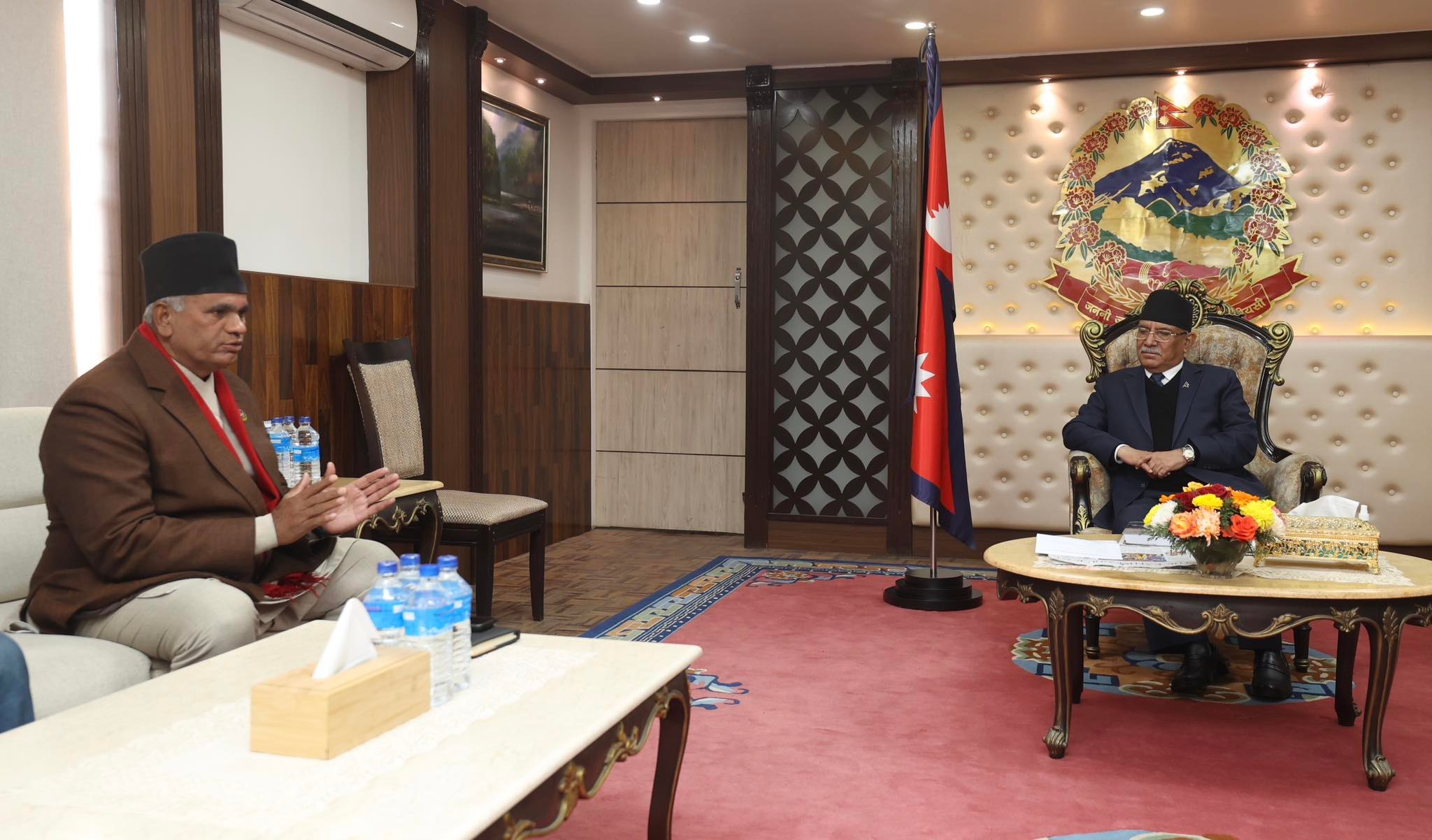 प्रधानमन्त्री प्रचण्डलाई भेट्न मुख्यमन्त्री रावल सोमबार बिहान प्रधानमन्त्रीको सरकारी निवास बालुवाटार पुगेका थिए।