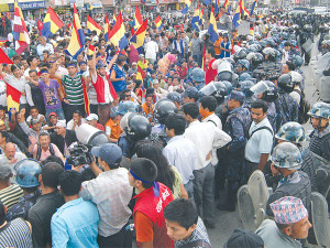 कमल थापाको जुलसले निषेधित क्षेत्र तोडेर संविधानसभा गेट तोड्न खोज्दा बानेश्वरमा तनाब