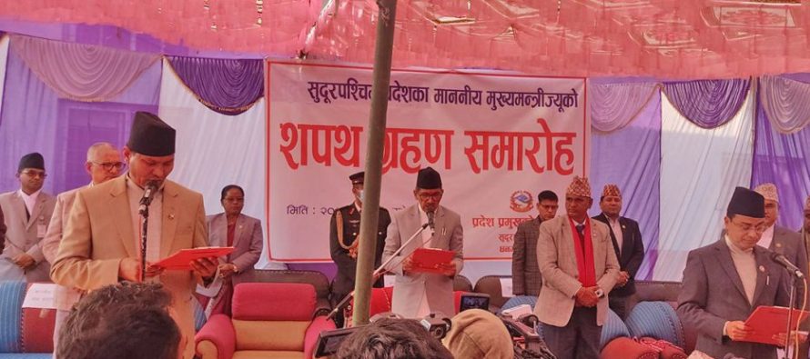 काठमाडौँ । सुदूरपश्चिमका नवनियुक्त मुख्यमन्त्री कमलबहादुर शाहले पद तथा गोपनीयताको शपथ लिएका छन् । प्रदेश प्रमुख देवराज जोशीले मुख्यमन्त्रीसहित नेकपा एसका नरेश शाही र कांग्रेसका प्रकाश देउवालाई मन्त्रीको शपथ गराए ।