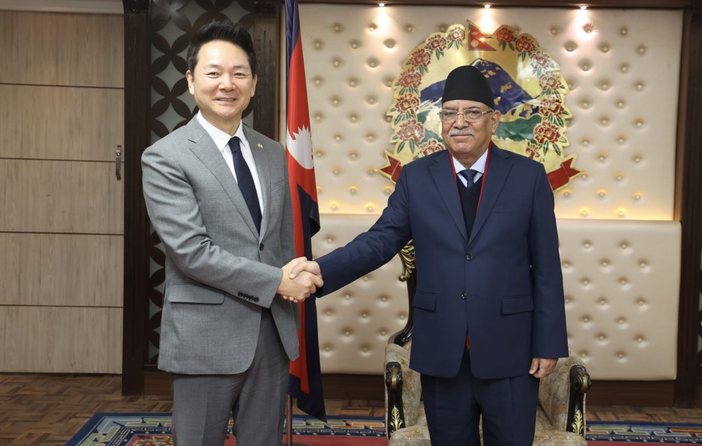 काठमाडौ । प्रधानमन्त्री पुष्पकमल दाहाल ‘प्रचण्ड’ले दक्षिण कोरियाका राष्ट्रपतिका विशेष दूत सुङ मिन जङसहितको आठ जनाको टोलीसँग शिष्टाचार भेटवार्ता गरेको छन्।