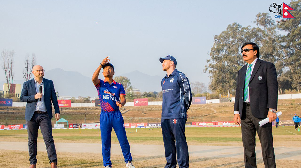 काठमाडौं । आईसीसी क्रिकेट विश्वकप लिग–२ अन्तर्गत आज नेपाल र स्कटल्याण्डबीच हुने खेलमा नेपालले टस जितेर पहिला बलिङ रोजेको छ।