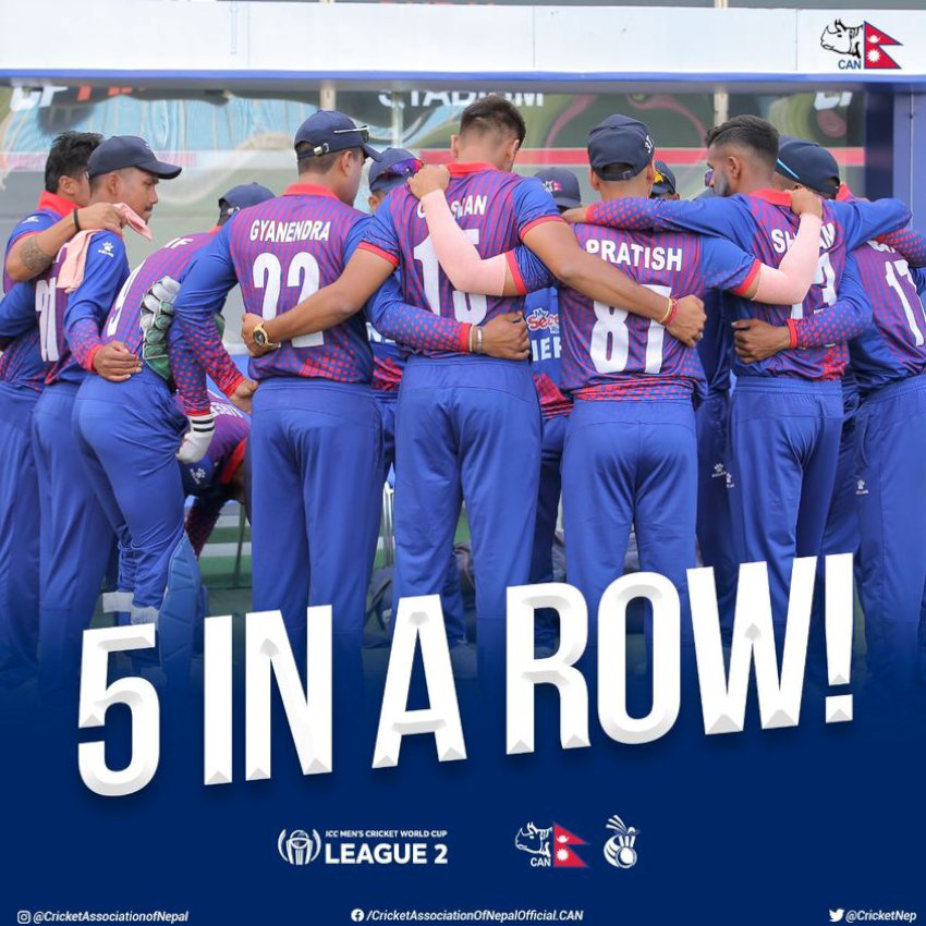 लिग टुमा नेपालको यो लगातार पाँचौ जित हो। यसअघि घरेलु मैदानमा भएको स्कटल्याण्ड र नामिबियासहितको शृखंलामा नेपालले सबै चार खेल जितेको थियो ।