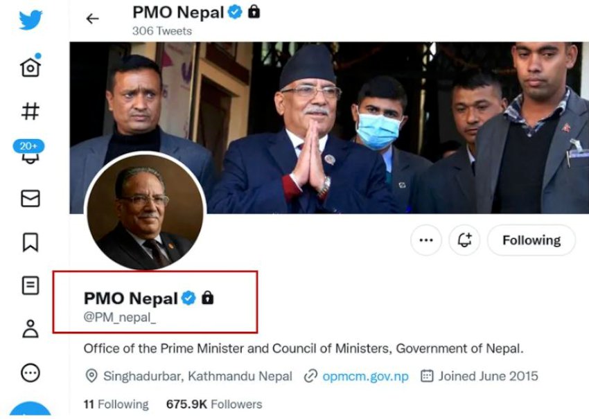 काठमाडौं । प्रधानमन्त्री तथा मन्त्रिपरिषद्को कार्यालयको ट्वीटर एकाउन्ट ‘पिएम नेपाल’ पुनः सञ्चालनमा आएको छ।