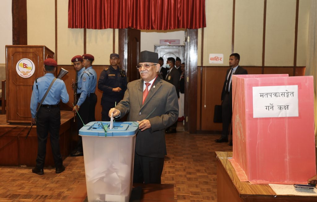 काठमाडौ । प्रधानमन्त्री पुष्पकमल दाहाल ‘प्रचण्ड’ले उपराष्ट्रपति पद निर्वाचनमा मतदान गरेको छन् । नयाँ बानेश्वरस्थित सङ्घीय संसद् भवनमा रहेको मतदान केन्द्रबाट उनले मतदान गरेको हो ।