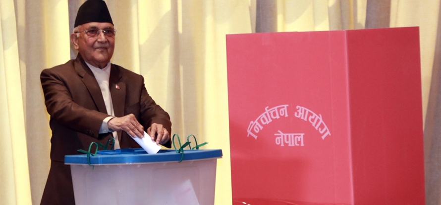 काठमाडौ । नेकपा(एमाले) एवं पूर्वप्रधानमन्त्री केपी शर्मा ओलीले उपराष्ट्रपति पदको निर्वाचनमा मतदान गरेको छन् । नयाँ बानेश्वरस्थित सङ्घीय संसद् भवनमा रहेको मतदान केन्द्रबाट उनले मतदान गरेको हो ।
