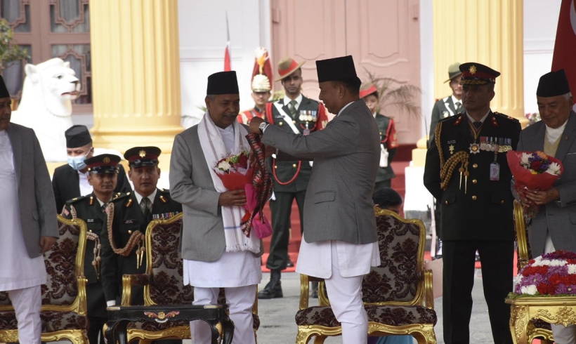 काठमाडौँ । नवनिर्वाचित उपराष्ट्रपति रामसहायप्रसाद यादवले सोमबार पद तथा गोपनीयताको शपथ लिएका छन् । राष्ट्रपति भवन शीतलनिवासमा आयोजना गरिएको विशेष कार्यक्रमबीच राष्ट्रपति रामचन्द्र पौडेलले यादवलाई शपथ गराएका हुन् ।