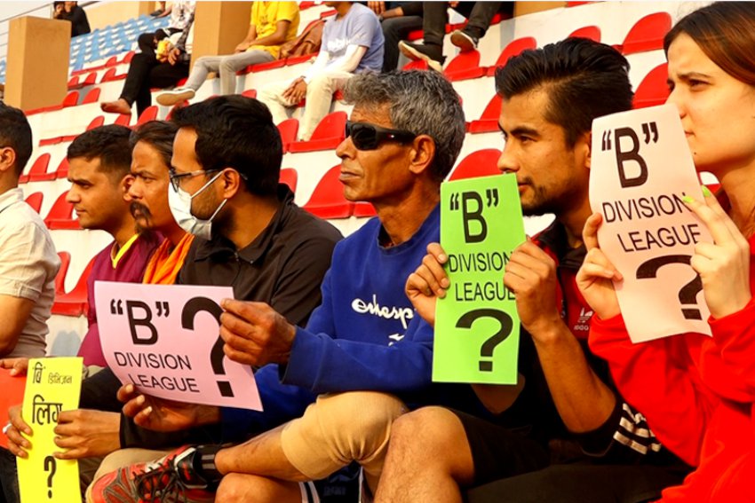 च्यासल मैदानमा शहीद स्मारक ‘ए’ डिभजिन लिगअन्तर्गत संकटा र एपिएफबीचको खेलका दौरान ‘बी’ डिभिजन लिग क्लबले प्रश्नवाचक चिह्नसहित सांकेतिक विरोध गरेका हुन्।