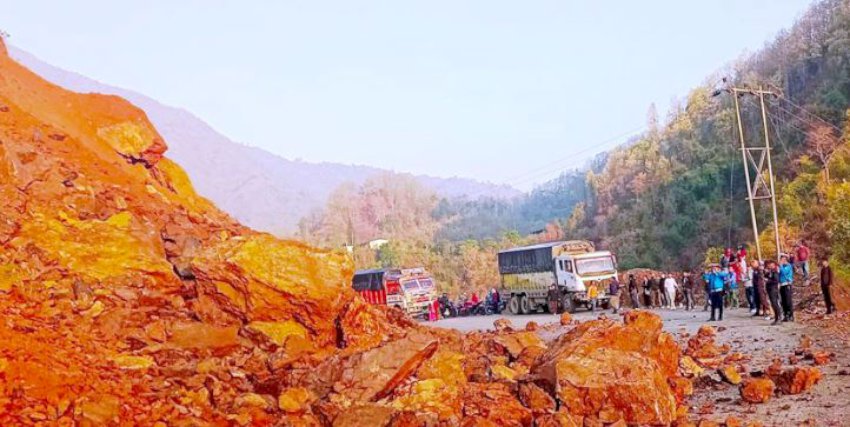 पाल्पा । सिद्धार्थ राजमार्ग अवरुद्ध बनेको छ । सिद्धार्थ राजमार्ग अन्तर्गत तिनाउ–५, चर्चरे नजिकै सुख्खा पहिरो गएपछि सडक अवरुद्ध बनेको हो ।