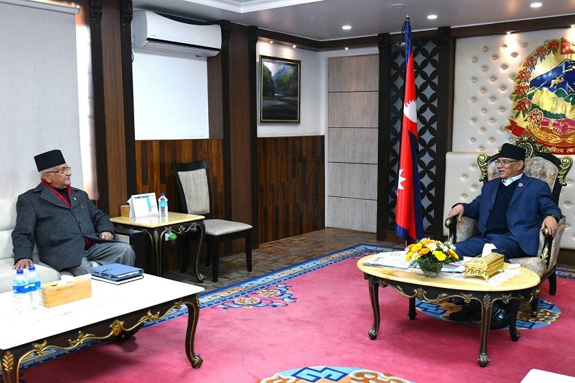 काठमाडौं । प्रधानमन्त्री पुष्पकमल दाहाल प्रचण्ड र एमाले अध्यक्ष केपी शर्मा ओलीले भेटवार्ता गरेका छन् । ओली र प्रचण्डबीच तीन दिनमा दोस्रोपटक भेटवार्ता भएको हो ।