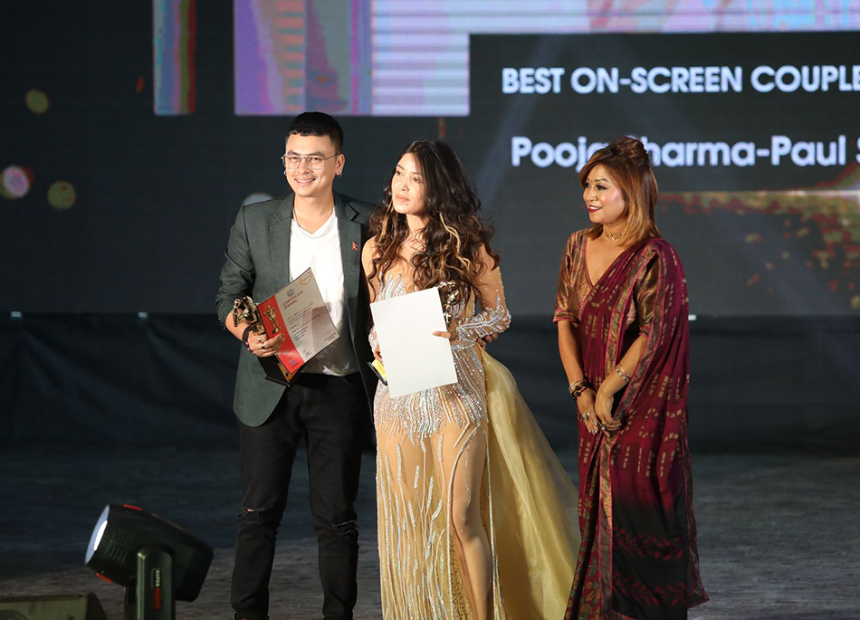 पूजाले अवार्ड ग्रहण गरिन् । पलले पहिले नै अवार्ड लिइसकेका थिए । त्यसपछि, पूजाले पललाई तानिन् र स्टेजको केही अगाडिको भागमा लगिन् । दुबै जनाले क्यामेरातिर फर्किएर अवार्ड देखाए ।