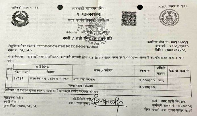 काठमाडौँ । काठमाडौँ महानगरपालिकाले खुला स्थानमा आगो बाल्नेलाई ५ हजार रुपैयाँ जरिवाना तिराएको छ ।