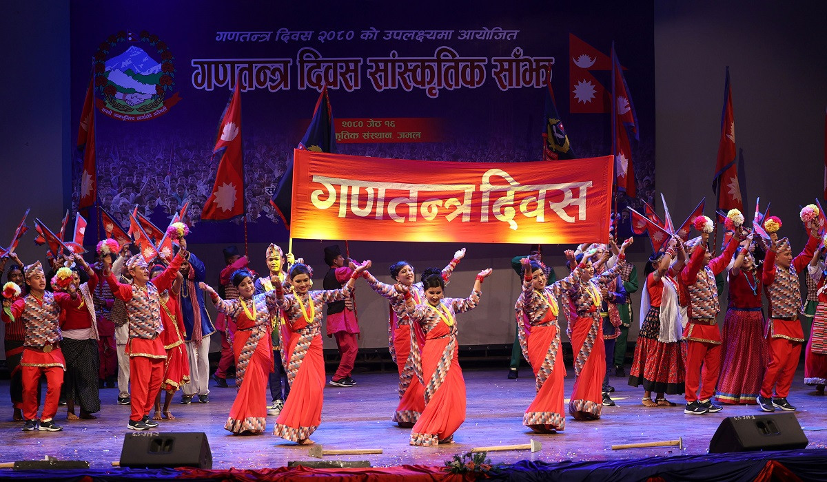 काठमाडौँ– गणतन्त्र दिवस २०८० को उपलक्ष्यमा आज ‘गणतन्त्र दिवस सांस्कृतिक साँझ’को आयोजना गरिएको छ ।
