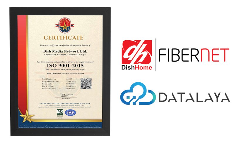 काठमाडौं । नेपालमा DTH सेवा प्रदान गरि रहेको डिश मिडिया नेटवर्क लिमिटेडले डाटा सेन्टर र इन्टरनेट सेवामा ISO प्रमाणीकरण प्राप्त गरेको छ । Americo quality standards registechले हालै कम्पनीको योजना, चुस्त नेतृत्व, कार्य सम्पादन मुल्याङ्कन, ग्राहक सेवाको गुणस्तरको आधारमा निरिक्षण गरी डिश मिडिया नेटवर्क लाई ISO9001:2015 प्रदान गरेको हो ।