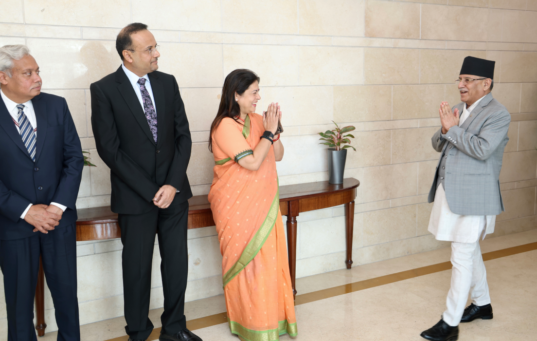 नयाँ दिल्लीस्थित इन्दिरागान्धी अन्तर्राष्ट्रिय विमानस्थमा भारतीय विदेश मन्त्रालयका राज्यमन्त्री मनाक्षी लेखीले उनलाई विदाई गरकी छिन् ।