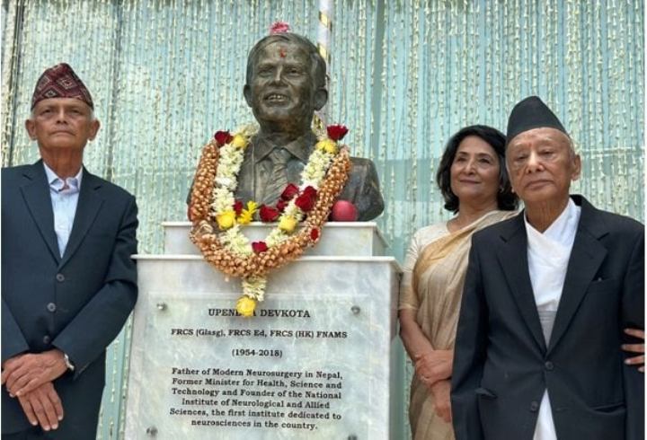 काठमाडौँ । वरिष्ठ स्नायु शल्यचिकित्सक प्रा डा उपेन्द्र देवकोटाको अर्धकदको प्रतिमा अनावरण गरिएको छ । विसं २०१० पुस ४ मा गोरखाको पण्डित गाउँ लिगलिगमा जन्मिएका प्रा डा देवेकोटाको पित्तनलीको क्यान्सरबाट विसं २०७५ असार ४ गते निधन भएको थियो ।