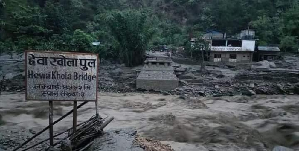 यही असार २ गते राति आएको बाढीले हेवाखोलामा पर्ने मेची राजमार्गको सडक पुल र तमोर करिडोरको बेलीब्रिज बगाएपछि ताप्लेजुङ जिल्ला र पाँचथरकै दुई गाउँपालिकासँग सडक सम्पर्क टुटेको छ । तर एक साता बितिसक्दा पनि हेवाखोलामा डाइभर्सन निर्माण हुनसकेको छैन ।