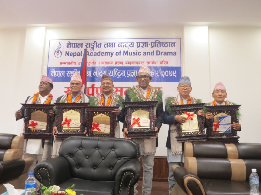 प्रतिष्ठानकी कुलपति निशा शर्मा पोखरेलको सभापतित्वमा आयोजित समारोहमा ६ जना स्रष्टा कलाकारलाई नेपाल सङ्गीत तथा नाट्य राष्ट्रिय प्रज्ञा पुरस्कार–२०७९ समर्पण गरे ।