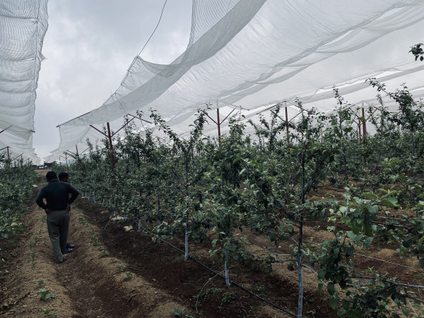 अहिले पतालेमा लगाइएका सबै विरुवाहरु हुर्किएर फल्न थालीसकेका छन् । स्याउको फुल खेल्ने तथा फल्ने समयमा असिनाको नोक्सानबाट जोगाउनको लागि हेलनेट (असिनाको आवरोध हटाउने जाली) को प्रयोग गरिएको छ । बैशाख र जेठ महिनामा अधिक्तम असिना पर्ने महिना भएकाले यि दुई महिनामा सबै स्याउका विरुवालाई हेलनेटले छोप्ने गरिएको केसीले बताए ।
