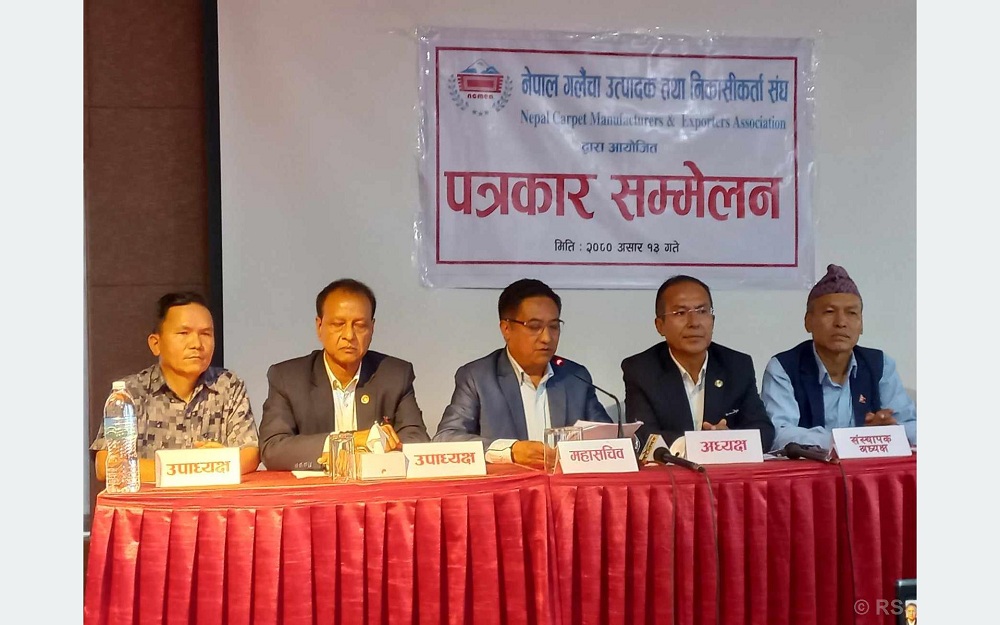 मुलुकको निकासीजन्य सामग्री उत्पादन गर्ने प्रमुख उद्योगका रूपमा रहेको गलैँचा उद्योगले वार्षिक रु १० अर्ब बराबरको सामग्री निकासी गरी भुक्तानी सन्तुलनमा टेवा पुर्याउँदैआएको छ । गलैँचा उद्योगले करिब दुई लाखलाई प्रत्यक्षरूपमा रोजगारी प्रदान गर्दैआएको महासचिव बलराम गुरुङले बताए ।