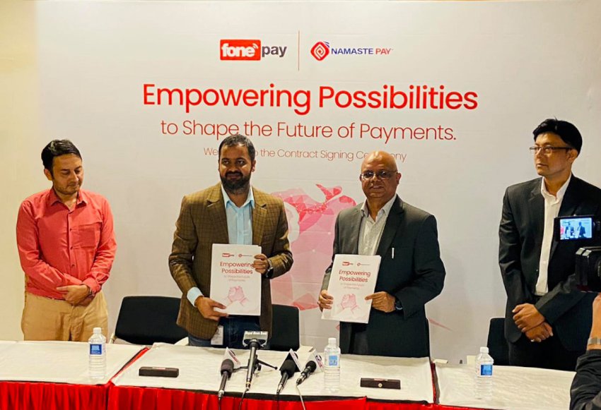 काठमाडाैं । 'फोन पे' र 'नमस्ते पे' बीच क्युआर भुक्तानी सम्बन्धी सम्झौतामा हस्ताक्षर भएको छ। सम्झौता पत्रमा फोन पेका प्रमुख कार्यकारी अधिकृत दिवस कुमार सापकोटा र नमस्ते पेका प्रमुख कार्यकारी अधिकृत प्रविणराज पोखरेलले हस्ताक्षर गरेका थिए।
