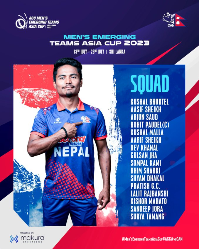 इमर्जिङ टिम्स एसिया कप जुलाई १३ देखि २३ सम्म श्रीलंकामा हुँदैछ ।