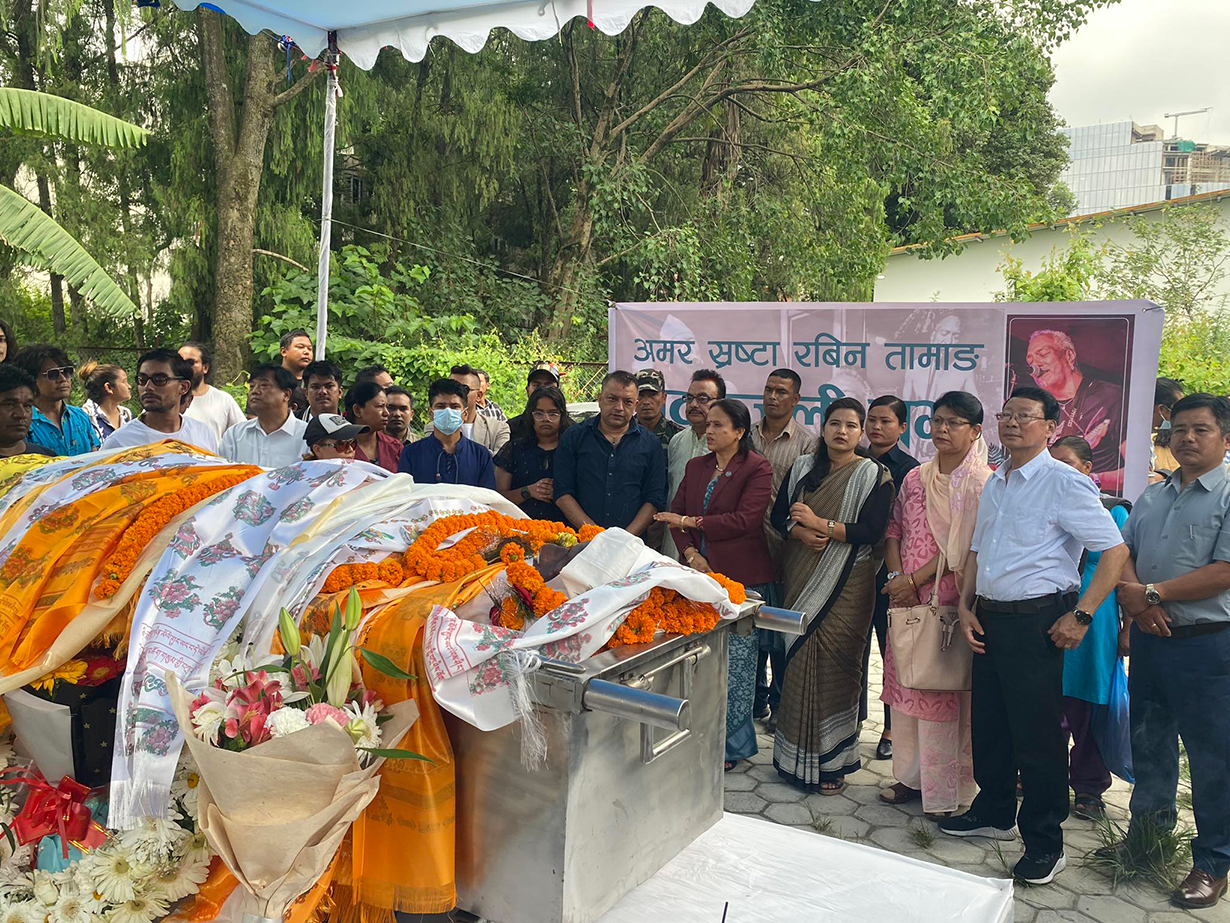 काठमाडौं । गायक तथा कलाकार रबिन तामाङको आज अन्त्येष्टि गरिँदै छ । दिवंगत गायक तथा अभिनेता रविन तामाङप्रति मन्त्री, नेता, शुभेच्छुक र कलाकर्मीले अन्तिम श्रद्धाञ्जली व्यक्त गरेका छन् ।