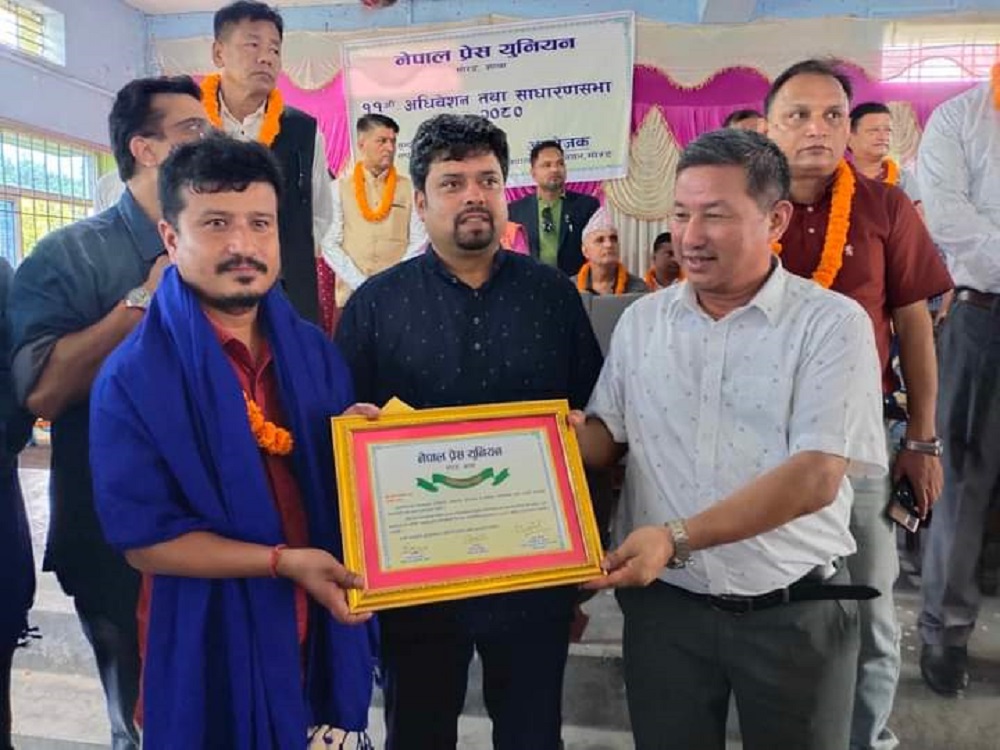 विराटनगर । नेपाल प्रेस युनियन मोरङ शाखाले जिल्लाका ६ जना पत्रकारलाई सम्मान गरेको छ । मोरङको बिराटचौकस्थित सुन्दरहरैंचा उद्योग वाणिज्य संघको सभाहलमा भएको ११ ओैं अधिवेशनमा ६ जना पत्रकारहरूलाई सम्मान गरिएको हो ।
