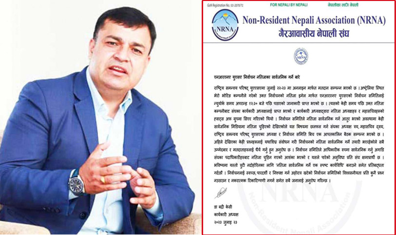 काठमाडौँ । गैरआवसीय नेपाली संघ (एनआरएनए) अमेरिकाको चुनावमा कार्यकारी अध्यक्ष डा. बद्री केसीले गम्भीर गल्ती गरेका छन् । चुनावमा केसीले निर्वाचन समितिलाई जानकारी नदिएरै पहिलै सार्वजनिक गरेर गम्भीर गल्ती गरेका हुन् ।