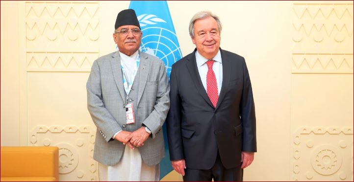 काठमाडौँ । प्रधानमन्त्री पुष्पकमल दाहाल ‘प्रचण्ड’ र संयुक्त राष्ट्रसङ्घका महासचिव एन्टोनियो गुटेर्रसबीच भेटवार्ता भएको छ ।