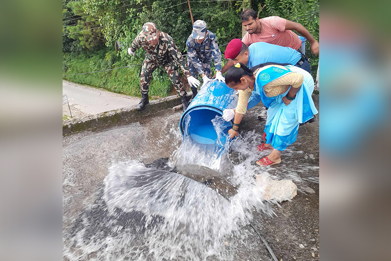 लामखुट्टेले अण्डा पार्न सक्ने सम्भावित स्थानको खोजी गरी लामखुट्टेको बासस्थान सरसफाइ र लार्भा नष्ट गर्ने अभियान सुरु गरिएको स्वास्थ्य कार्यालयका प्रमुख भट्टले बताए । पानीका ड्रम, पानी जम्ने खाडल, पुराना टायर, पानीका बोतल, गमला, पानी जम्मा हुने ठाउँमा लामखुट्टेले फूल पार्ने भएकाले सरसफाइ गरिएको हो।