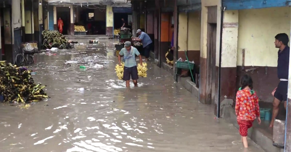 काठमाडौं । काठमाडौंको बल्खुमा रहेकाे तरकारी बजारमा बाढी पसेकाे छ । साेमबार बेलुका देखी निरन्तर परेकाे वर्षाका कारण तरकारी बजारमा बाढी पसेकाे हाे ।