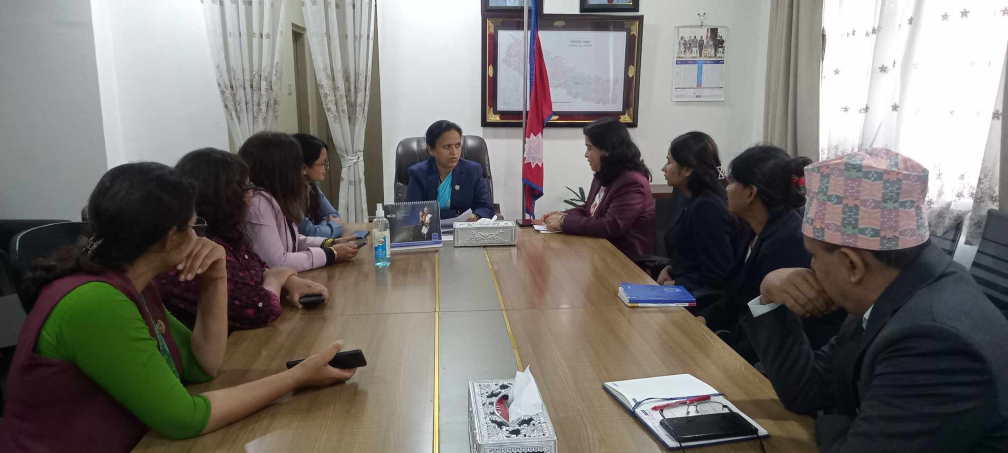 कार्य समिति सदस्य तथा सूचना तथा सञ्चार प्रविधिमा महिला संयोजक रिना श्रेष्ठले मन्त्री शर्मालाई ज्ञापनपत्र बुझाउनुभएको थियो ।