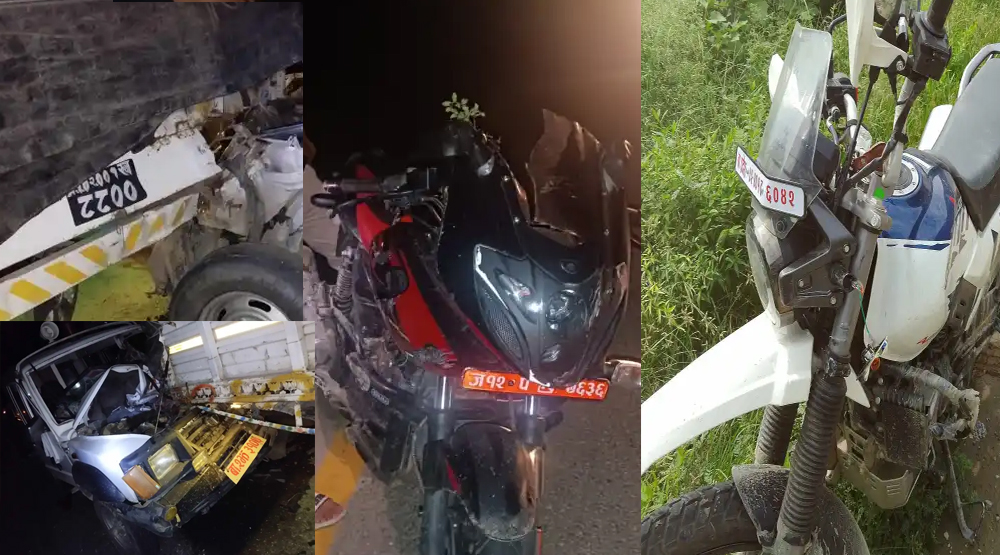 ओखलढुंगाबाट काठमाडौँ जाँदै गरेको बिएबि ९७९३ नम्बरको टोएटा पिकप र विपरीत दिशाबाट आउँदै गरेको ओखलढुंगाको सुनकोसी गाउँपालिकाको बागमती प्रदेश ०२–००१–ब ६०२४ नम्बरको मोटरसाइकल ठक्कर खाई दुर्घटना हुँदा मोटरसाइकलमा सवार दुई जना घाइते भएका हुन् । उनीहरूको मिसन अस्पताल ओखलढुंगामा उपचार भइरहेको प्रहरीले जनाएको छ ।