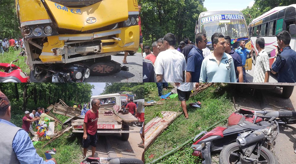 अक्स्फोर्ड कलेजको बस, शव बोकेको गाडी, स्कुटर, बलोरो र मोटरसाइकल एक–आपसमा ठोक्किएको प्रहरीले जनाएको छ । प्रहरीका अनुसार ठोक्किएका सवारीमा मोटरसाइकल र स्कुटरको संख्या धेरै रहेको छ । व्यस्त राजमार्गमा प्राय सबै सवारी तीव्र गतिमा भएकाले एकैपटक धेरै ठोक्किएको हुन सक्ने बताइएको छ । दुर्घटनास्थलबाट १८ जना घाइतेलाई उपचारका लागि अस्पताल पठाइएको छ ।