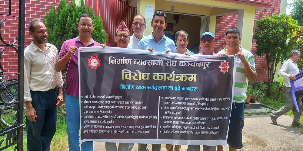 काठमाडौं । नेपाल निर्माण व्यवसायी महासंघले आन्दोलनको स्वरुप परिवर्तन गरेको छ । आन्दोलनको परिवर्तित स्वरुप निर्माण व्यवसायीले बुधवार ७ प्रदेश र ७७ जिल्ला निर्माण व्यवसायी संघहरूले आ—आफ्नो कार्यालयमा महासंघको नौ बुँदे माग सहितको ब्यानर प्रदर्शन गरेका छन् ।