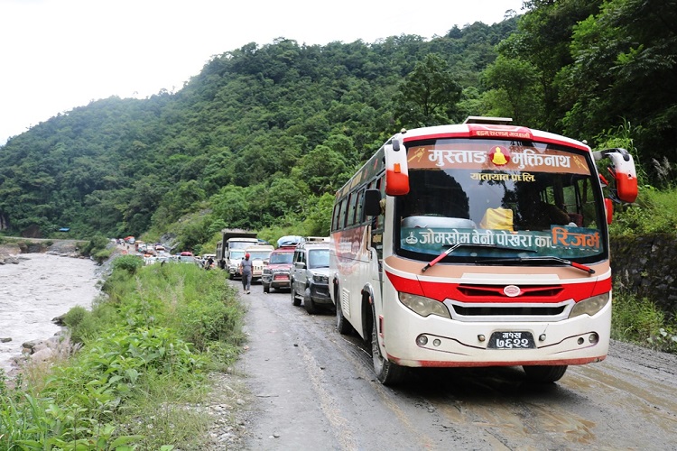 अन्नपूर्ण गाउँपालिकाको जलथले, गुँइठे, सुकेबगर, खामभिक्तालगायतका क्षेत्रमा अविरल वर्षासँगै ५० भन्दा बढी ठाउँमा खसेको पहिरोका कारण ७६ किलोमिटर दूरीको बेनी–जोमसोम सडकमा गएको शनिवारदेखि सिधा यातायात सञ्चालन हुन सकेको थिएन ।