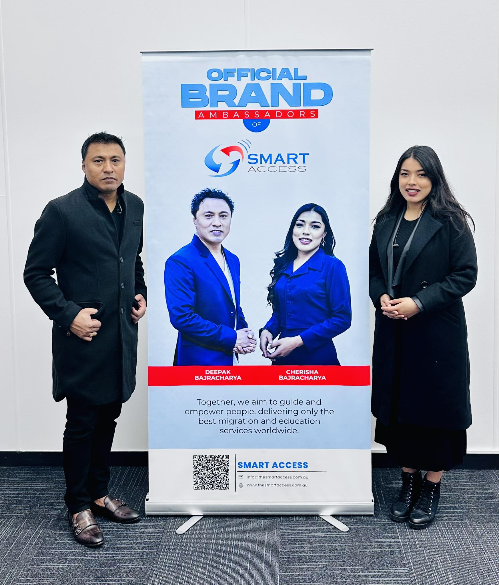 'स्मार्ट एक्सेस'ले बुधबार अस्ट्रेलियाको मेलबर्न स्थित आफ्नो अफिसमा एक कार्यक्रम बीच दीपक बज्राचार्य र उनकी छोरी चेरिसालाइ आफ्नो कम्पनीको ब्राण्ड एम्बेसडरमा नियुक्ती गरेको हो ।