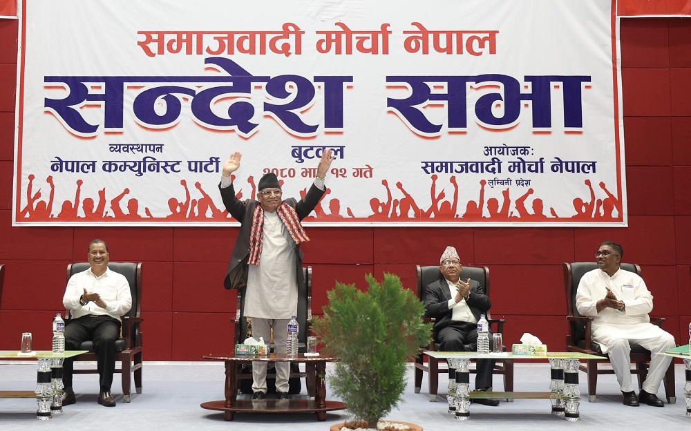बुटवल । प्रधानमन्त्री पुष्पकमल दाहाल ‘प्रचण्ड’ले नेपालको राष्ट्रियता र स्वाधिनताको पक्षमा आफू जनयुद्धमा लडे जसरी नै लडेको बताएका छन् । आज बुटबलमा आयोजित समाजवादी मोर्चा नेपालको सन्देश सभालाई सम्बोधन गर्दै यस्तो बताएका हुन् ।