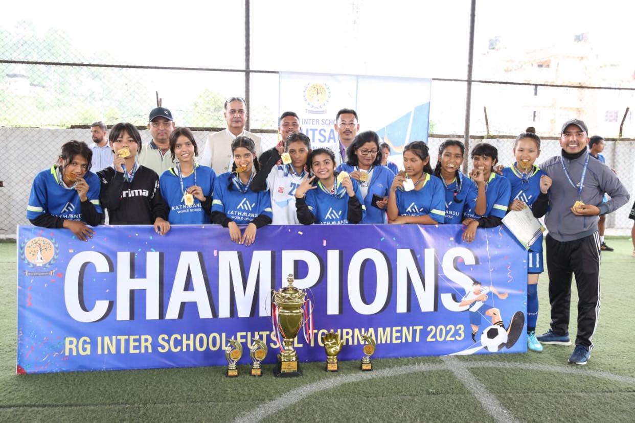 काठमाडौं । आयोजक राजर्षी गुरुकुल र काठमाडौं वर्ल्ड स्कुलले आरजी अन्तर स्कुल फुटसल प्रतियोगिताको उपाधि जितेको छ । राजर्गी गुरुकुल ब्वाइजतर्फ र काठमाडौं वर्ल्ड स्कुल गर्ल्सतर्फ च्याम्पियन बनेको हो ।
