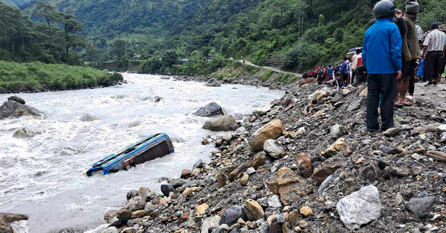 प्रहरीका अनुसार शनिबार मध्यराति बस खस्दा चितवनको भरतपुर महानगरपालिका– १३ घर भई हाल मर्स्याङ्दी गाउँपालिका– ७ ङादी बस्दै आएका ४० वर्षीय खेमबहादुर भुजेल बेपत्ता भएका छन् ।