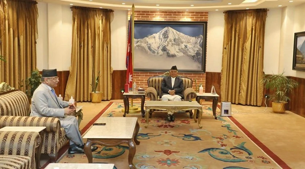 काठमाडौं । राष्ट्रपति रामचन्द्र पौडेलसँग प्रधानमन्त्री पुष्पकमल दाहाल ‘प्रचण्ड’ले सोमबार बिहान भेटवार्ता गरेका छन् । राष्ट्रपति भवन शीतलनीवासमा राष्ट्रपति र प्रधानमन्त्रीबीच भेटवार्ता भएको हो ।