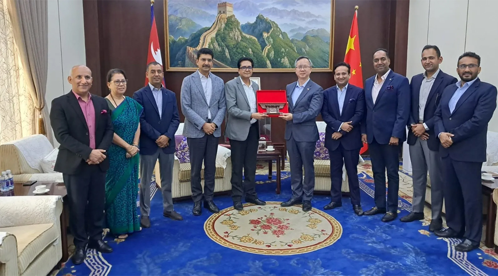 काठमाडौं । नेपाल उद्योग परिसंघ र नेपालका लागि चिनियाँ राजदूत छन सोङबीच छलफल भएको छ । अध्यक्ष राजेशकुमार अग्रवाल नेतृत्वको परिसंघ पदाधिकारीहरुले मंगलरबा राजदूत सोङसँग भेट गरी लगानी एवं व्यवसायिक सम्बन्ध विस्तारका विषयमा छलफल गरेका हुन ।