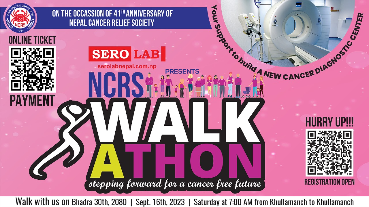 काठमाडौं । क्यान्स रोगीको संख्या बढ्दिै गइरहेका बेला त्यस्ता बिरामीको उपचारमा सहयोग पुर्याउने उद्धेश्यका साथ पदयात्रा कार्यक्रमको आयोजना हुने भएको छ । नेपाल अर्बुद रोग निवारण संस्थाले आफ्नो ४१ औं वार्षिकोत्सवको अवसरमा क्यान्सर रोग सम्बन्धि सचेतना जगाउने उद्धेश्यका साथ भदौ ३० गते शनिबार पदयात्रा कार्यक्रमको आयोजना गर्न लागेको हो ।
