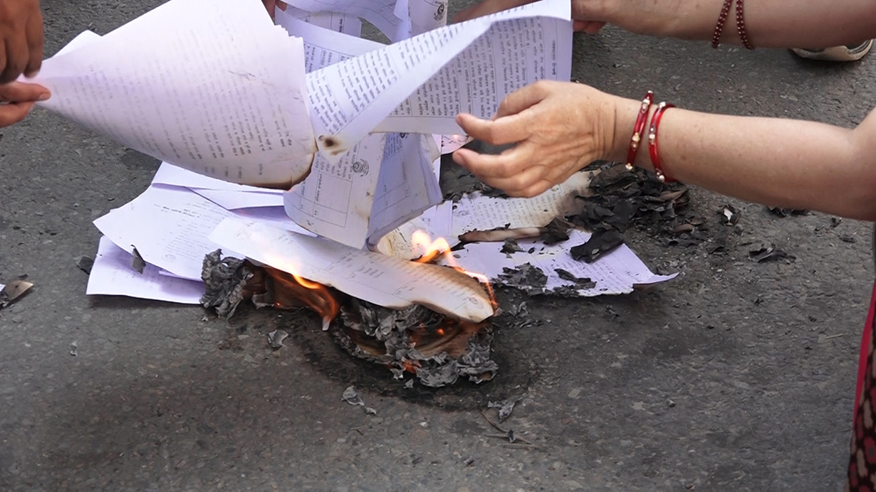 नेपाल राहत शिक्षक केन्द्रीय समितिका अध्यक्ष खेमराज अधिकारीले सामुदायिक विद्यालयमा कार्यरत देशैभर ४० हजार राहत शिक्षकको हक अधिकार कुण्ठित गर्नेगरी सरकारले विधेयक ल्याएकोले जलाउन बाध्यता आइपरेको बताए ।