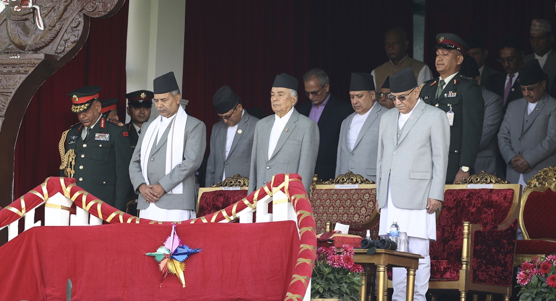 काठमाडौँ । संविधान दिवस, २०८० का अवसरमा आज मूल समारोह समितिले सैनिक मञ्च (टुँडिखेल)मा विशेष समारोहको आयोजना गरेको छ । समारोहमा राष्ट्रपति रामचन्द्र पौडेल प्रमुख अतिथिका रूपमा सहभागी भए ।