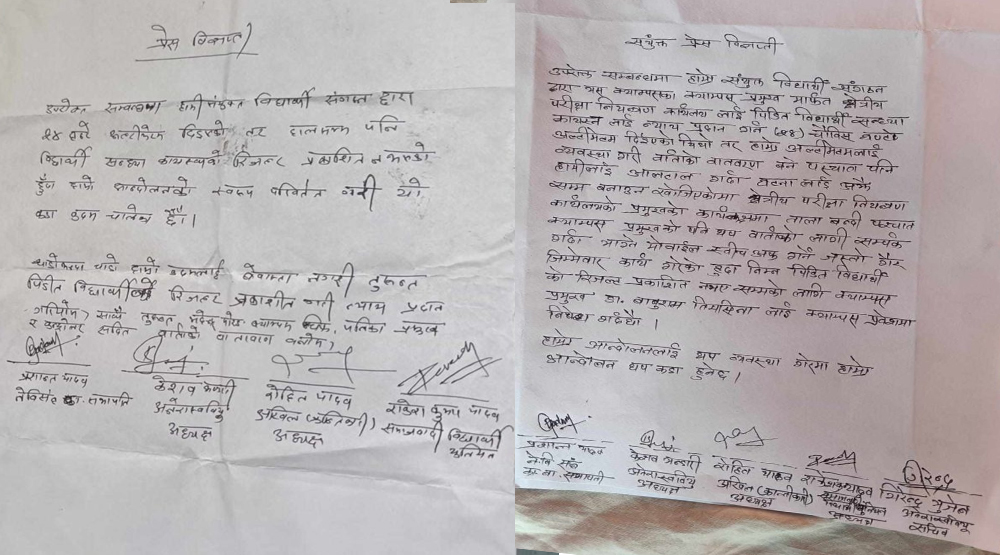 विराटनगर । महेन्द्र मोरङ क्याम्पसमा एक प्राध्यापकले मानविकी संकायको स्नातक तहमा अध्ययनरत आफ्नी छोरीलाई पास गराउन उत्तर पुस्तिका नै साटफेर गरेको आरोप लागेको छ । अर्की विद्यार्थी सन्ध्या कायस्थको थप कपी निकाली सोही क्याम्पसका प्राध्यापक राजन दत्तकी छोरी आस्था दत्तको कपीमा अट्याच गराएर पास गराएको आरोप लागेको हो ।
